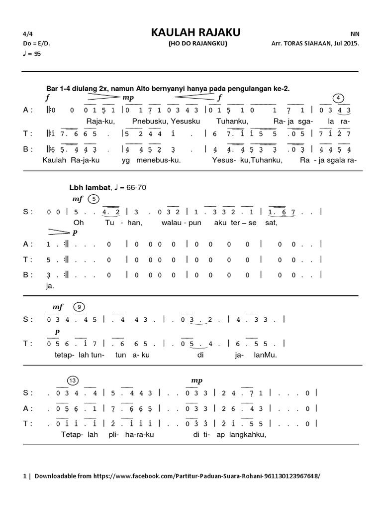 Tongtong ma au ramoti di nasa langkangki. Saleleng mangolu ahu sahat tu Ho. Tuhan molo tung mabiar pe ahu Sai tiop ma tanganku sai togu-togu ahu Sondangima ma rohakku urasi tondikki Ho do hatiurani ho do muali Ho do dalan na tutu ho do sasude Ho do Rajakku sipaluai sahat tu surgo ahu Binahen ni mudar-Mi Ho do Rajakku naung manobus ahu Dang.