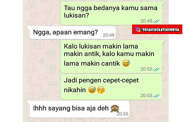 Lukisan semakin lama tambah antik kalau kamu semakin lama tambah cantik 10. Lukisan semakin lama tambah antik kalau kamu semakin lama tambah cantik 50. Cuaca boleh berkabut asap tetapi mencintaimu tetap aku yang paling siap 49.