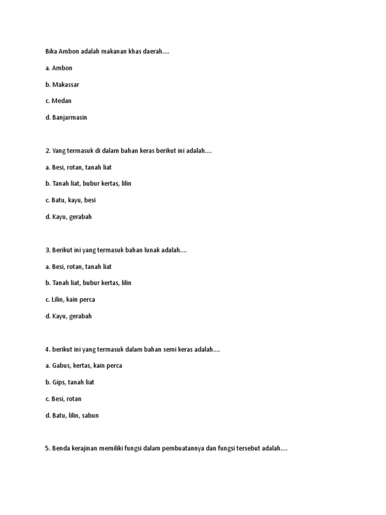 Dalam fungsi ini kerajinan tangan dengan fungsi pakai merupakan benda yang terbuat dari tangan di. Kerajinan yang bahan baku pembuatannya masih berasal dari alam atau mengalami pengolahan. View Soal prakarya 1docx from AA 1Soal Susulan prakarya 1.